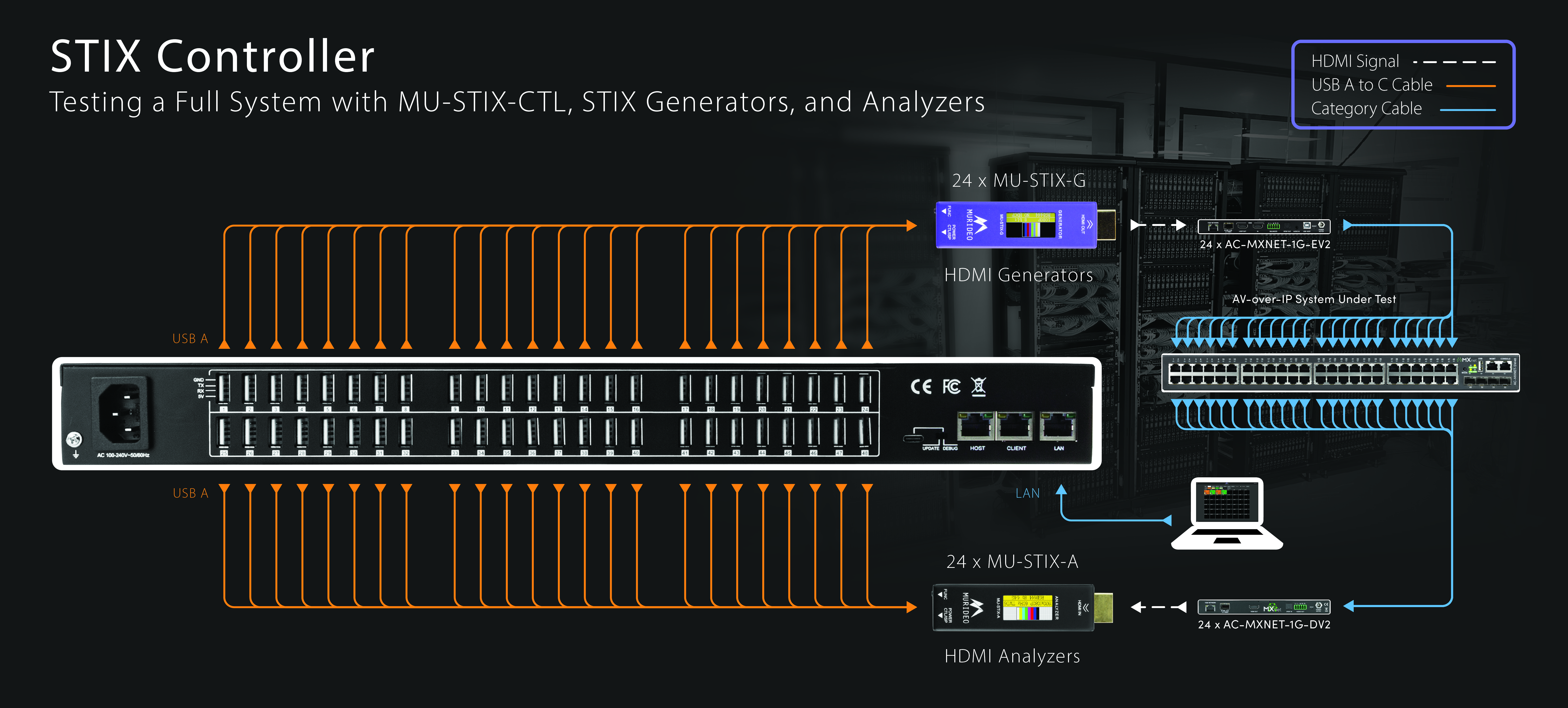 MU-STIX-CTL är byggd för QC- och efterlevnadstestning i hög volym och är idealisk för tillverkare, HDMI-certifieringsanläggningar och ingenjörslaboratorier. Integratörer som driftsätter stora AVoIP-system kommer också att dra nytta av MU-STIX-CTL-ekosystemet som ett kraftfullt verifieringsverktyg före driftsättning – vilket säkerställer att varje enhet i kedjan är fullständigt testad och redo för fältet.