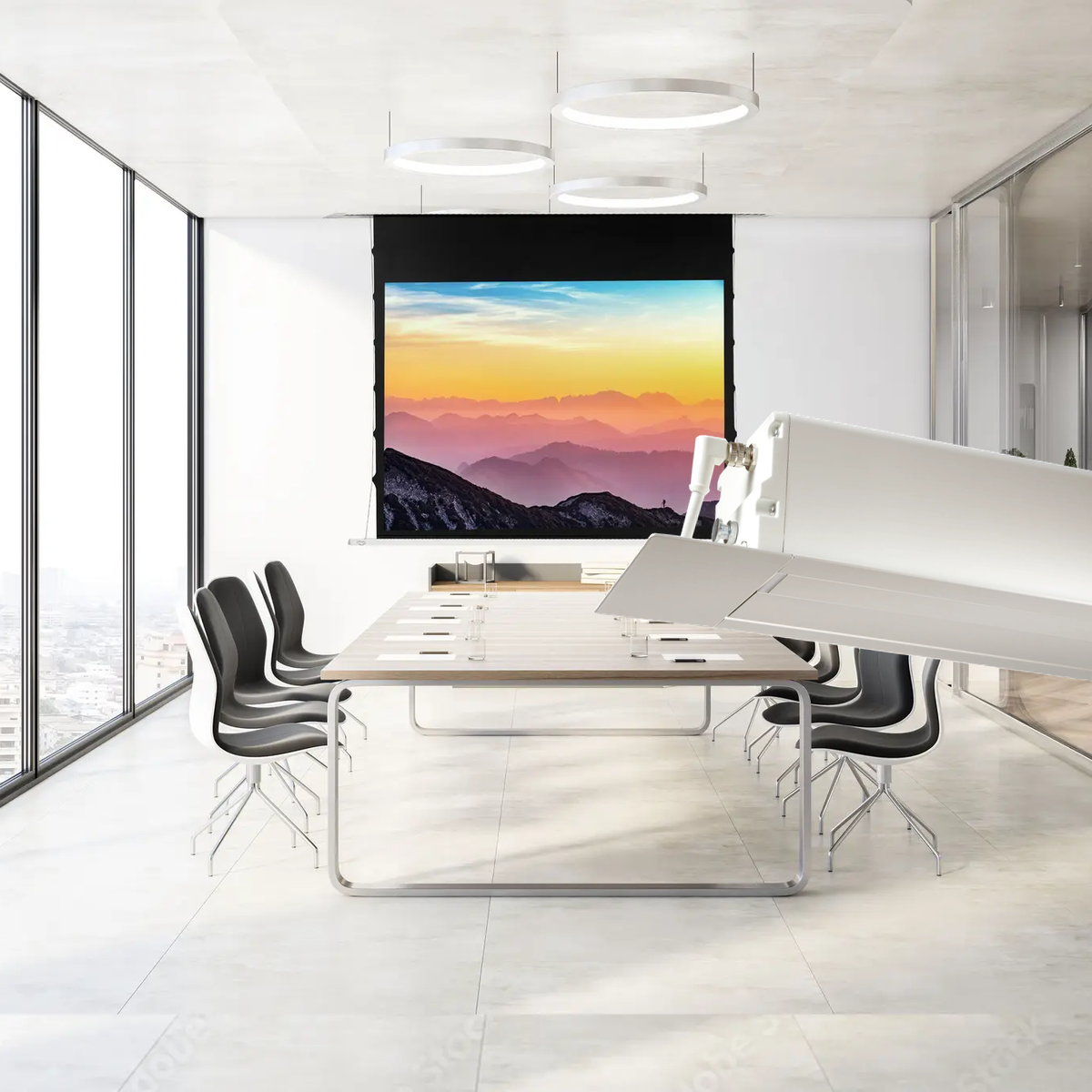 Sesame är en prisbelönt projektorduk designad för infällda installationer i undertak och gipstak. Med sin innovativa konstruktion och eleganta aluminiumkassett erbjuder den en diskret lösning där teknik och design smälter samman.