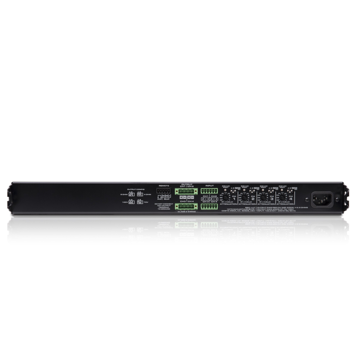 Slutsteg, 4x200W, 4O/8O/70V/100V