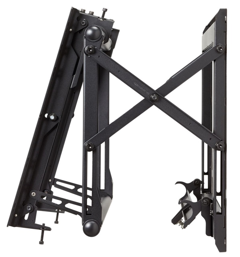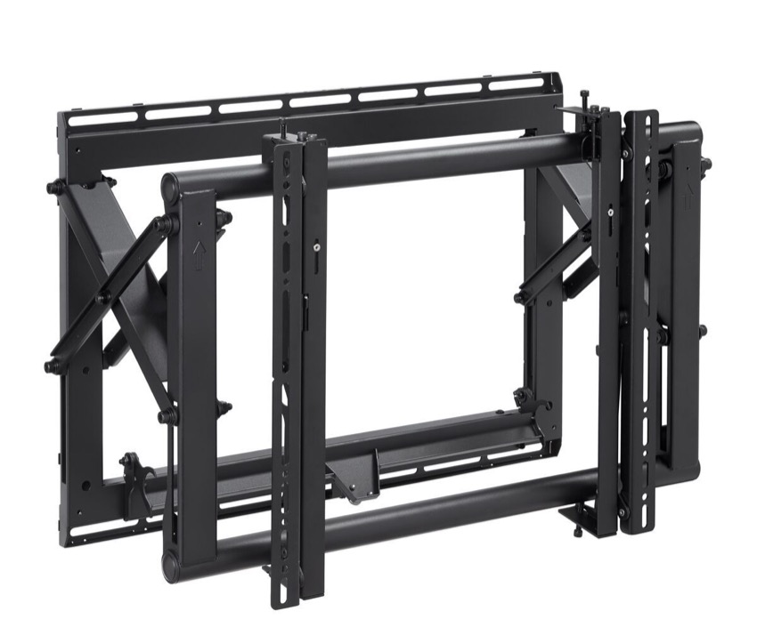 PFW 6870 is a customizable video wall framing system for displays weighing up to 72 kg / 160 lbs. with a mounting pattern of 200 x 200 to 600 x 400mm. It features multi-monitor stacking, spring-loaded release, open design, custom spacers, top adjustable mounting brackets and straight scissor-style extension.