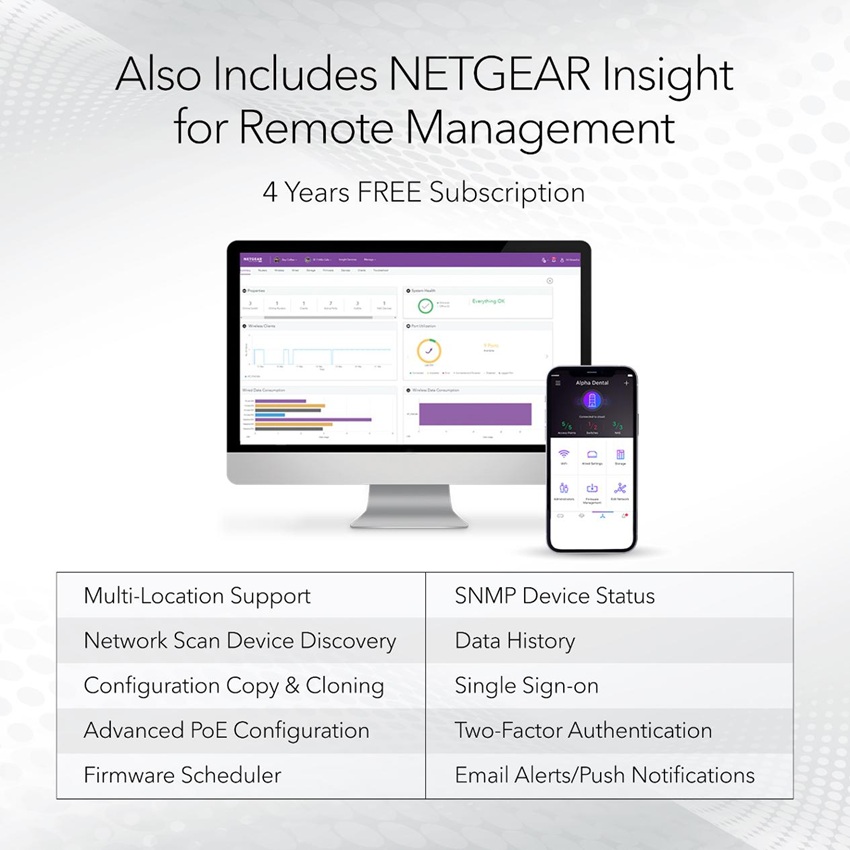 Seamless integration with NETGEAR Pro WiFi Access Points and select Smart switches through NETGEAR Insight Cloud Management