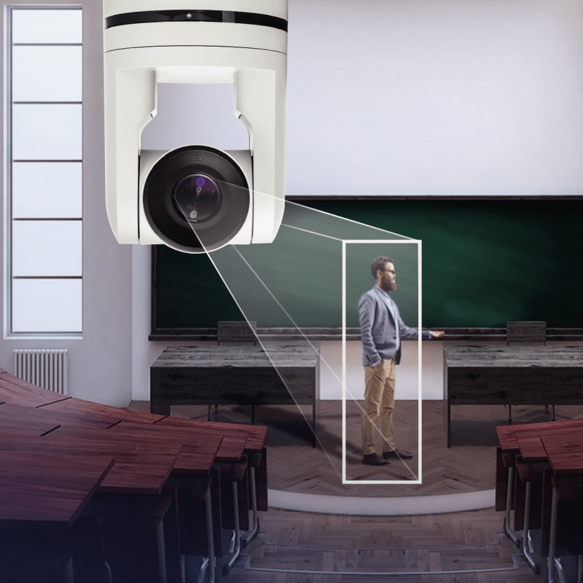 Presenter Tracking – kameran följer talaren när de rör sig i rummet.