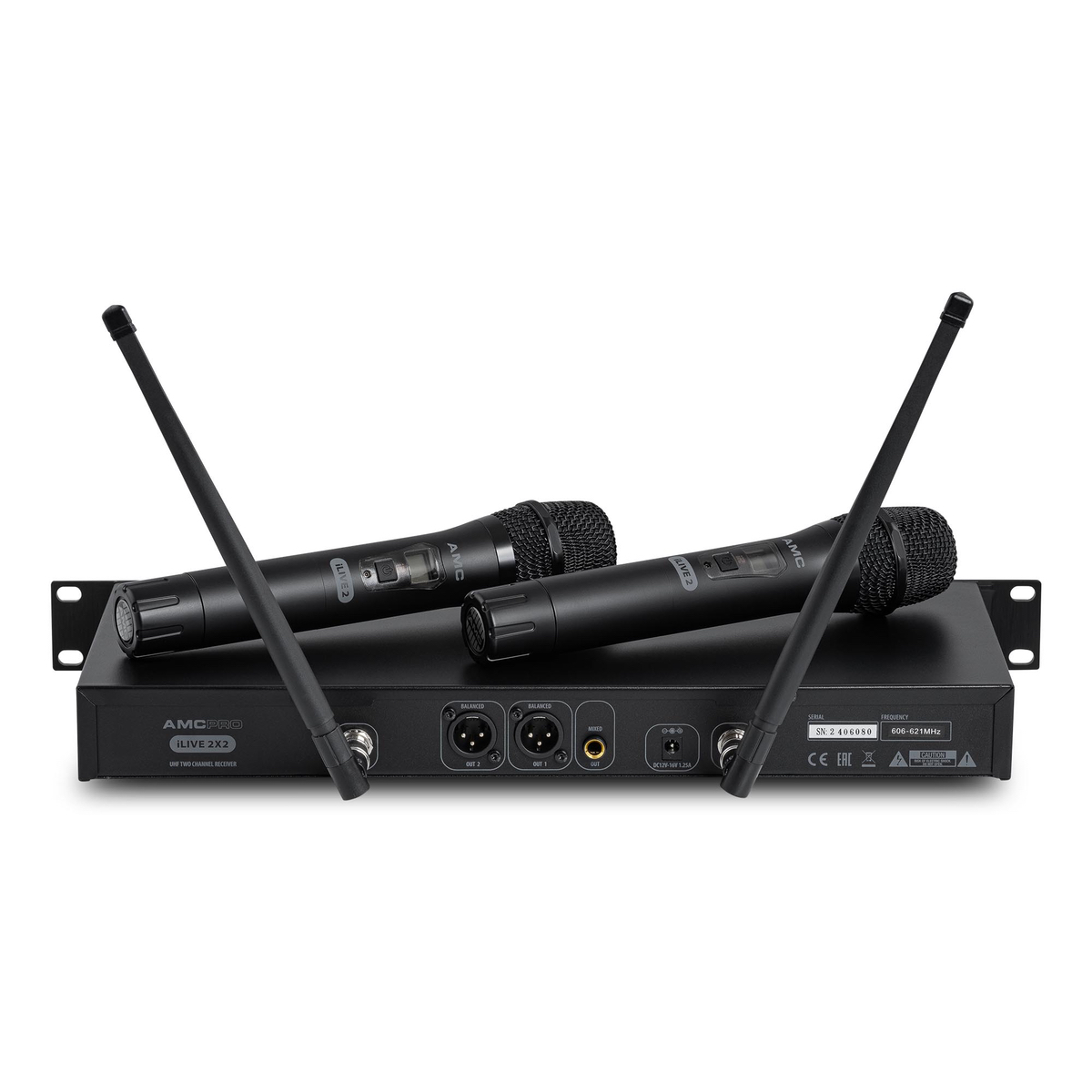 Systemet är fullt kompatibelt med alla AMC iLive 2-seriens handhållna sändare och bältsändare, vilket ger hög flexibilitet i olika installations- och användningsmiljöer.